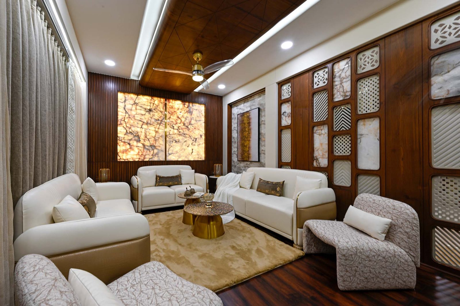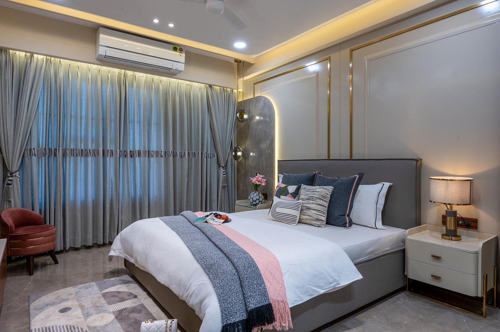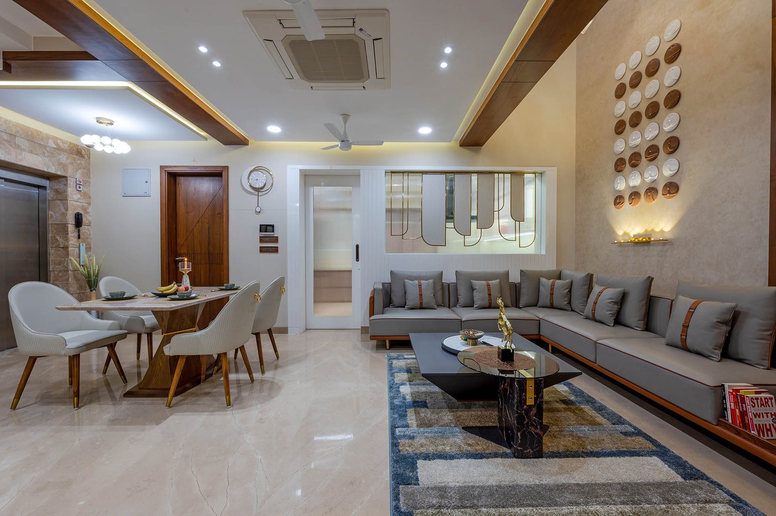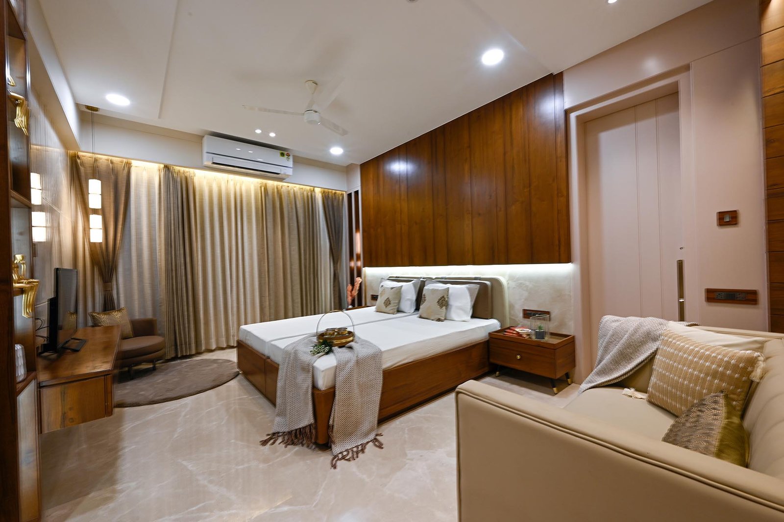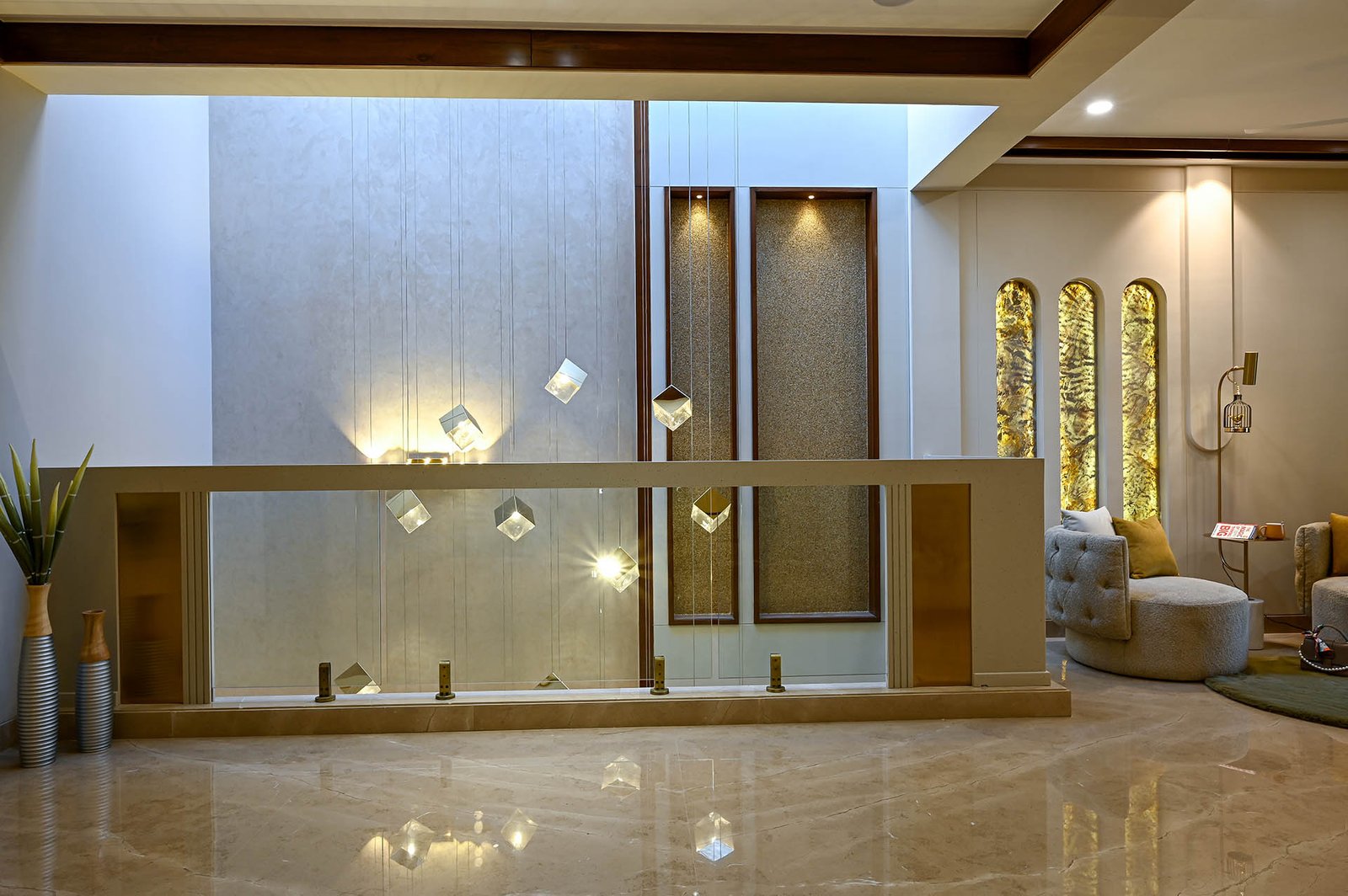 Parallel Volumes residence” refers to a luxury residential project in Indore, designed by architecture firm Jaju creation by akhilesh jaju . The house features a unique design characterized by the interplay of two distinct volumes: a long concrete structure and a white, double-story volume that intersects it, creating a modern aesthetic with a play of light and shadow.
