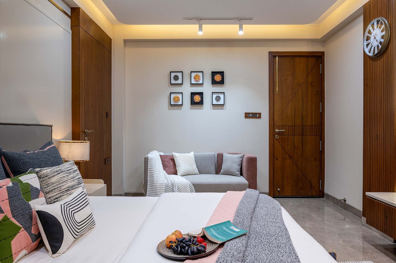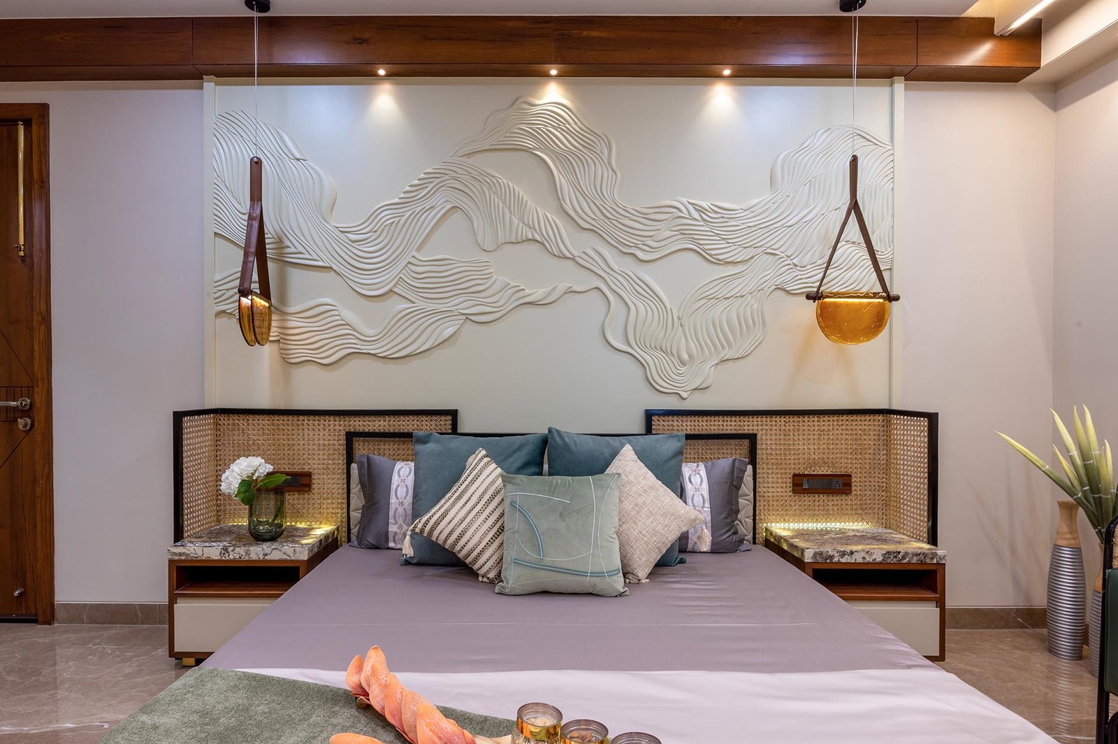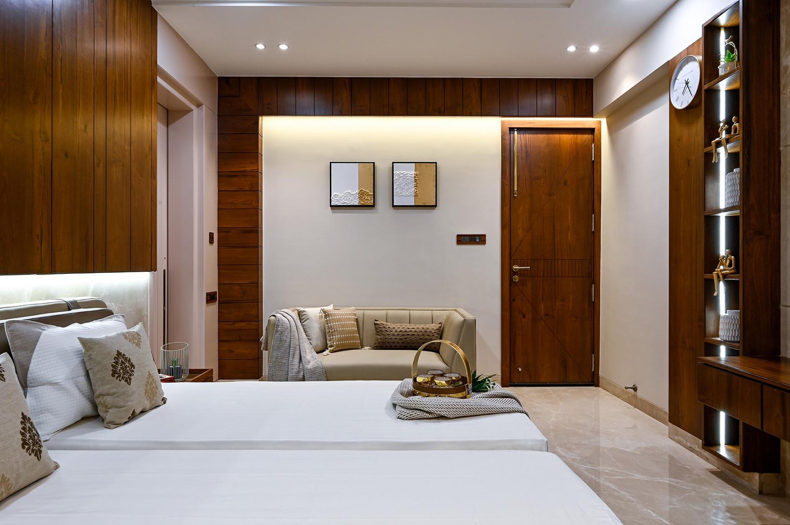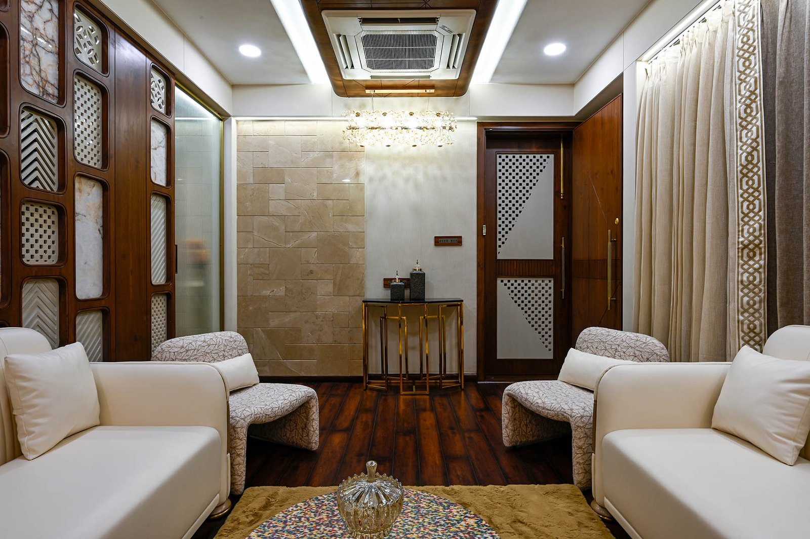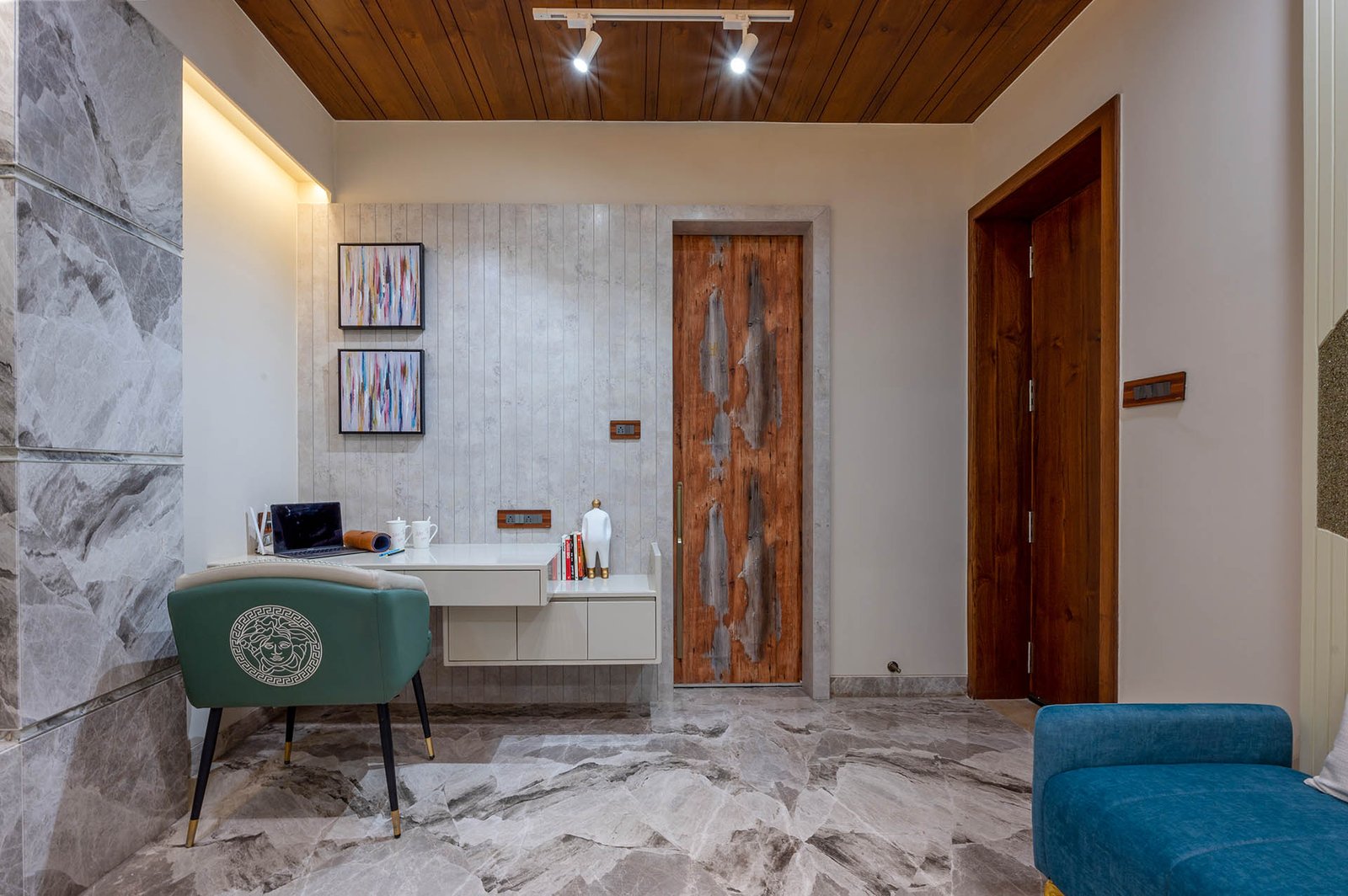 Parallel Volumes residence” refers to a luxury residential project in Indore, designed by architecture firm Jaju creation by akhilesh jaju . The house features a unique design characterized by the interplay of two distinct volumes: a long concrete structure and a white, double-story volume that intersects it, creating a modern aesthetic with a play of light and shadow.